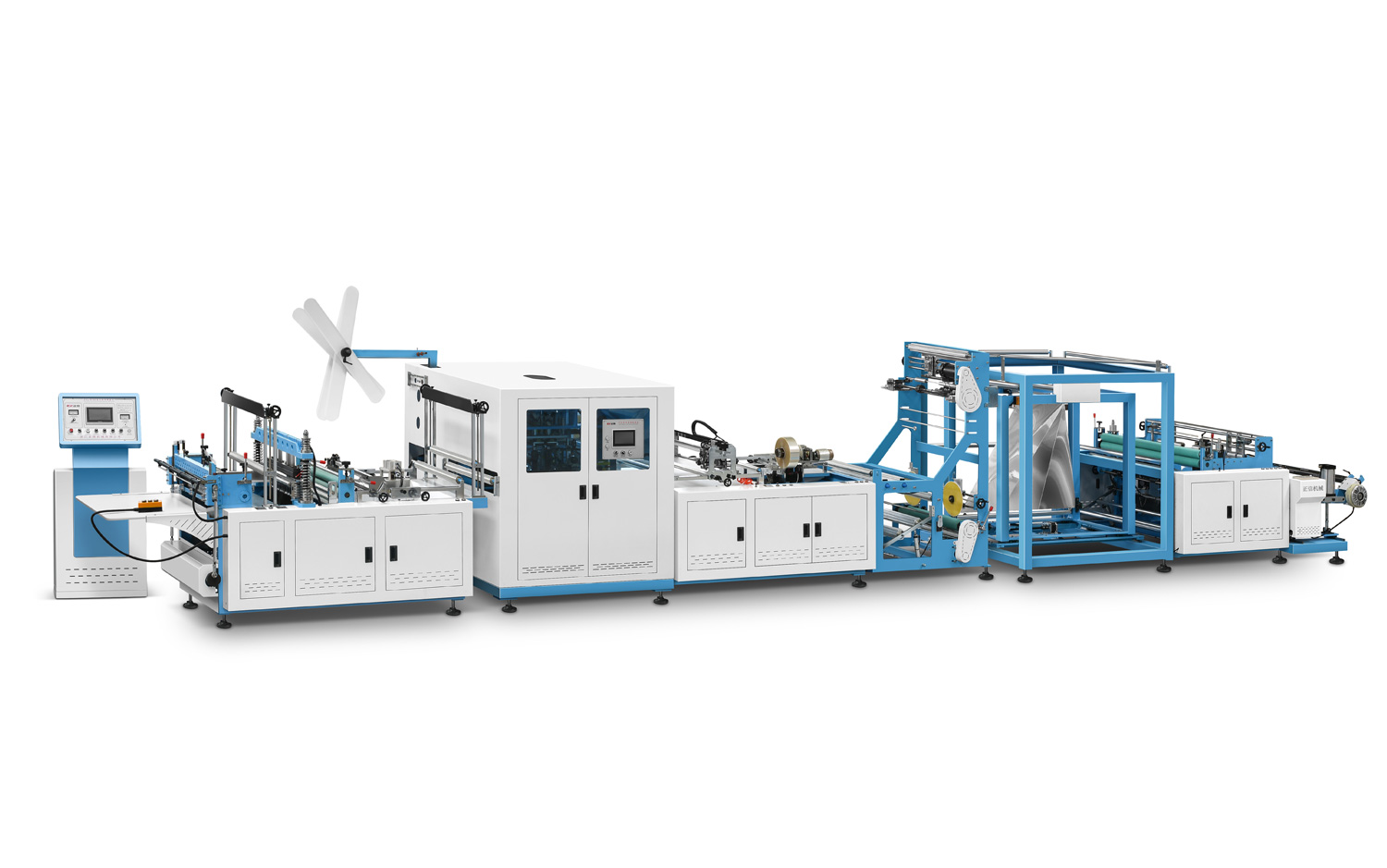 1、該機適用原材料為無紡布,能加工各種不同規(guī)格,不同形狀的無紡布袋,平口袋、手提平口袋、背心袋、穿繩袋等,該機集機電為一體,運用LCD觸摸屏操作,配 以步進布式定長,光電跟蹤,電腦自動定位,電腦自動糾邊,準(zhǔn)確、平穩(wěn)、自定計 數(shù),即可設(shè)定技術(shù)報警,自動打孔,自動燙把手等工控裝置,使其生產(chǎn)的成品封線牢 固,切線美觀,高速,是你可以放心使用的優(yōu)良環(huán)保型制袋設(shè)備。